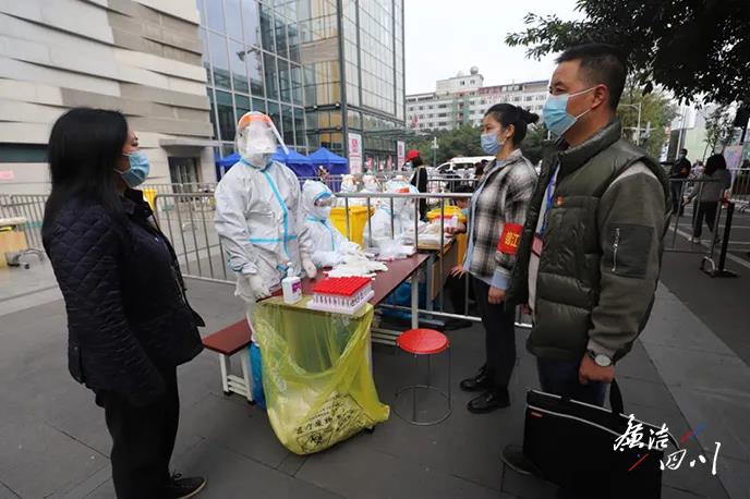 图为金牛区纪检干部在社区协助开展核酸检测工作(张雪林 摄)