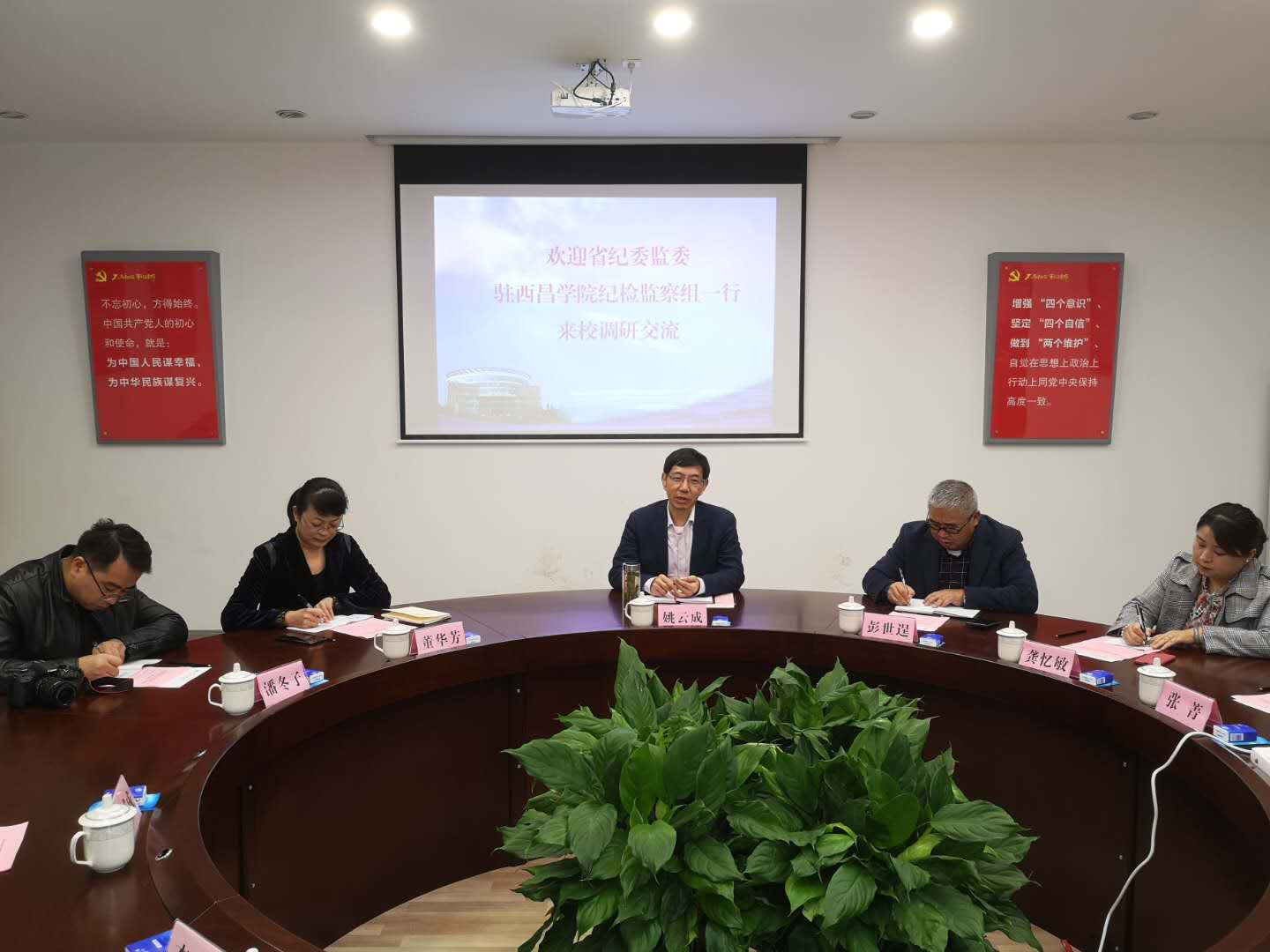 11月9日,省纪委监委驻西昌学院纪检监察组组长、西昌学院党委副书记、纪委书记姚云成一行到我校调研交流纪检监察工作。省纪委监委驻校纪检监察组组长、校党委副书记、纪委书记雷超,驻校纪检监察组成员参加了座谈交流。