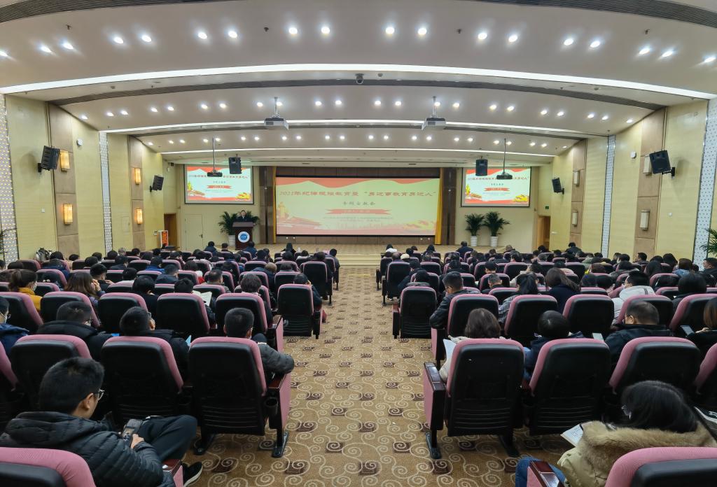 12月27日下午,我校2021年纪律规矩教育暨“身边事教育身边人”专题宣教会在航空港国际会议厅举行。省纪委监委驻校纪检监察组组长,校党委副书记、纪委书记雷超,学校党委常委、组织统战部部长熊建,全体中层领导干部、校纪委委员、校纪委全体干部以及部分科级干部参加了会议。会议由雷超主持。