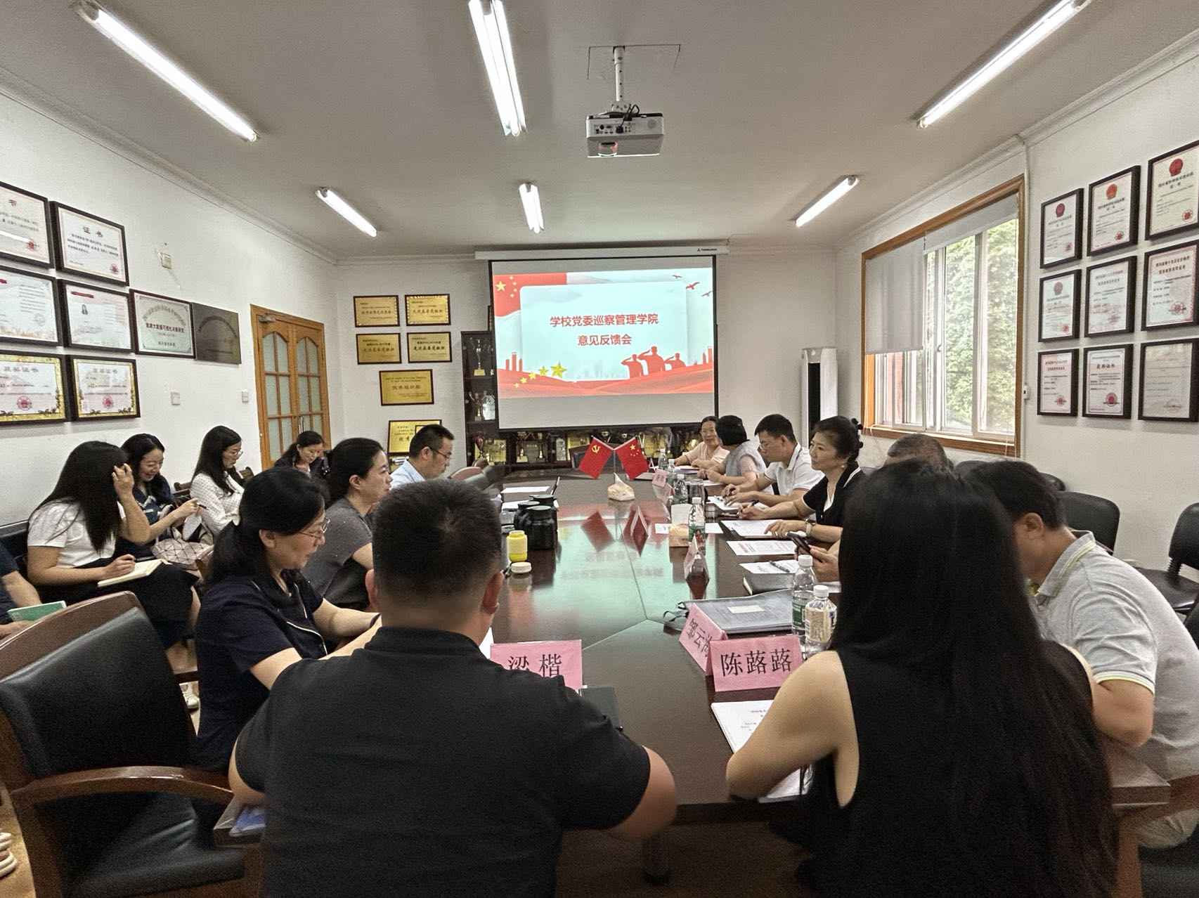 6月26日,学校党委第三巡察组巡察管理学院情况反馈会在龙泉校区集贤楼316会议室召开。巡察组组长李萍,党委组织部、党委统战部副部长徐紫电,巡察组副组长唐琴,党委巡察工作办公室沈杭,巡察组工作人员以及管理学院党政班子成员、系主任、专业主任、实验室主任、科级以上干部及教师代表参加了反馈会。会议由管理学院党委书记刘敦虎主持。