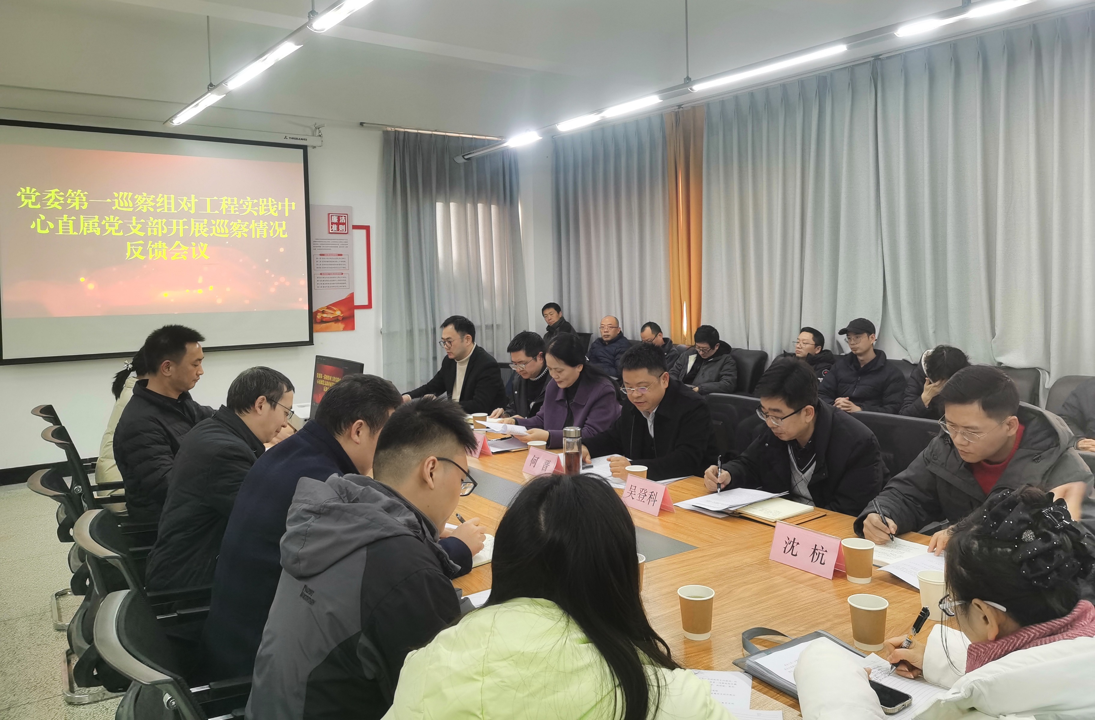 反馈会由工程实践中心直属党支部书记主持,学校党委常委、副校长何晋,第一巡察组组长戴丽红、副组长吴登科,党委组织部副部长厉威成,纪委办公室副主任陈曦,巡察办公室沈杭,巡察组全体成员,以及工程实践中心党政班子成员和全体教职员工参加会议。