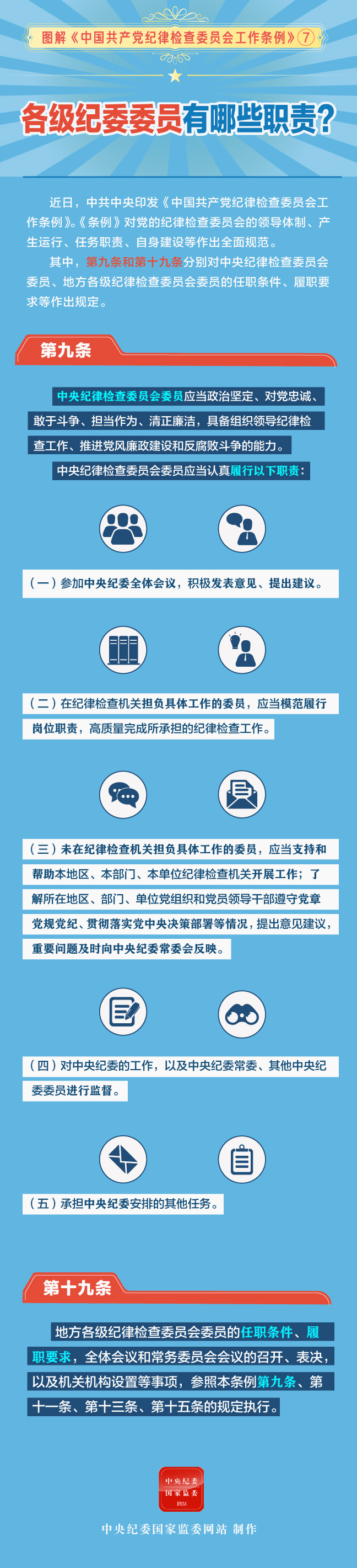 图解中国共产党纪律检查委员会工作条例 各级纪委委员有哪些职责?